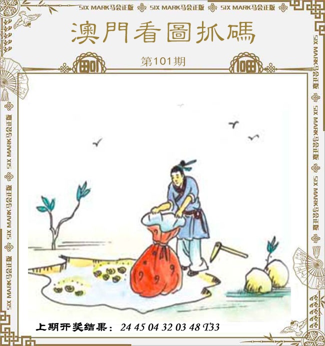 【抓码图】101期:图中一男子拿着一个大袋子,旁边好多金子,解猴鸡马鼠牛虎。 |