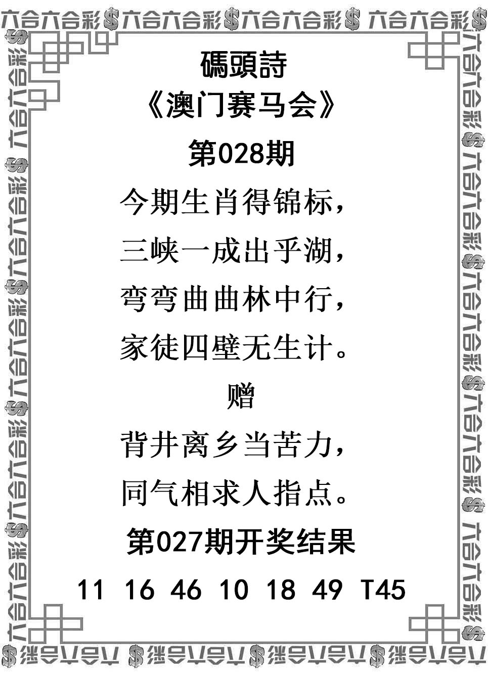 028期澳彩码头诗 |